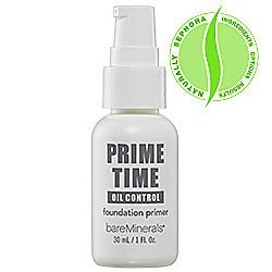 Bare Escentuals Prime Time Oil Control Foundation. What it is: An oil-free foundation primer for a shine-free complexion.What it does:Bare Escentuals Prime Time Oil Control is a water-based primer developed for oily, sensitive, or problem-prone skin to instantly smooth the complexion prior to bareMinerals SPF 15 Foundation. The oil-, fragrance-, and silicone free formula is clinically proven to control shine throughout the day, as well as to regulate oil and refine pores with minerals and natural plant extracts. The lightweight primer glides on seamlessly leaving the skin matte, refreshed, and ready for foundation.Bare Escentuals Prime Time Foundation Primer Oil Control 1 oz Product Reviews Of Bare Escentuals Prime Time Foundation Primer Oil Control 1 oz and then check the lowest price immediately. In a very minimal occasion merely!